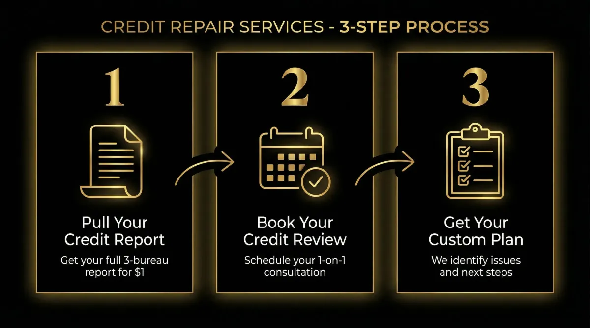 The $1 covers secure access to your full 3-bureau credit report. This allows us to review your report in real time during your consultation and provide accurate guidance.
